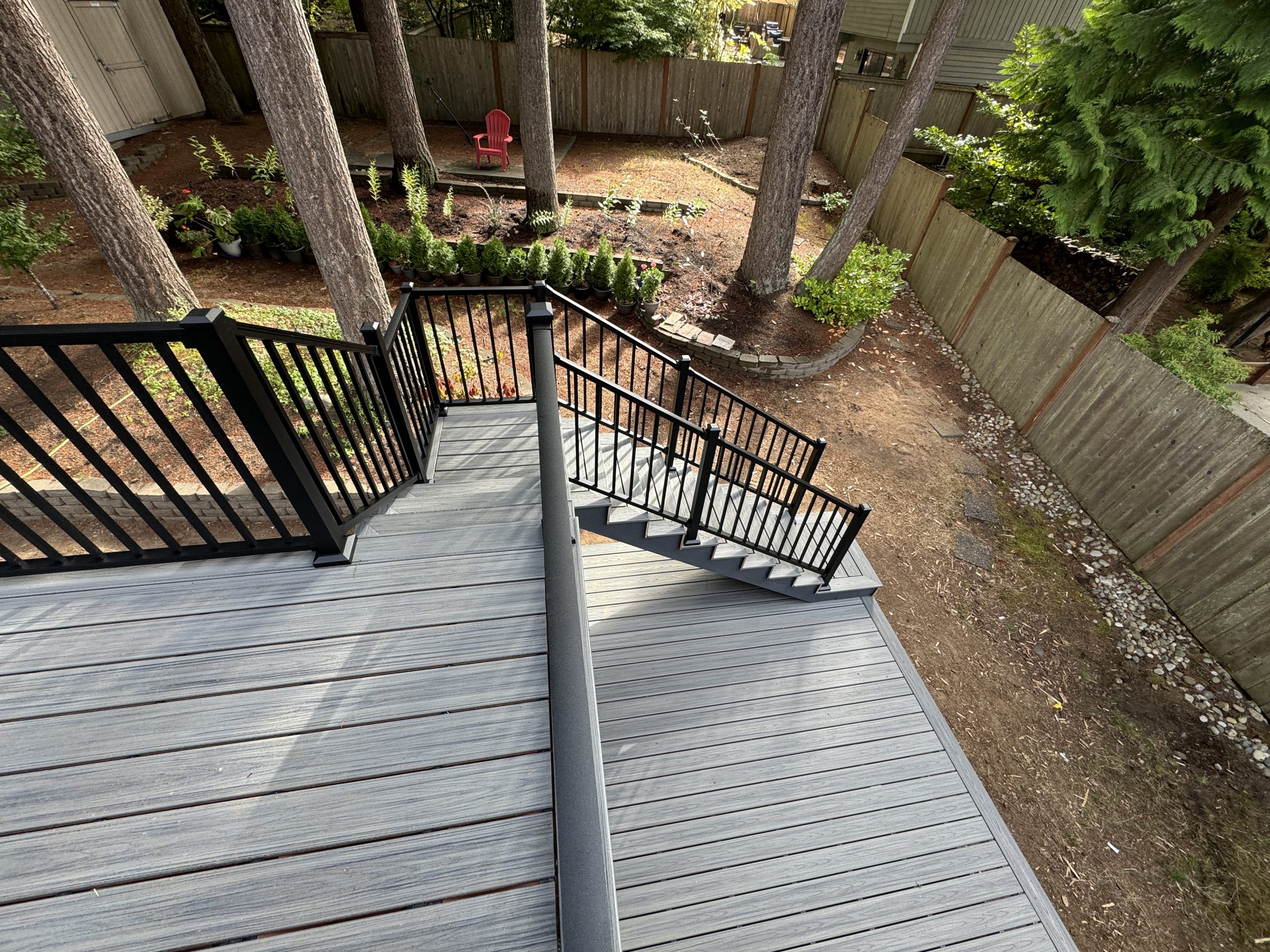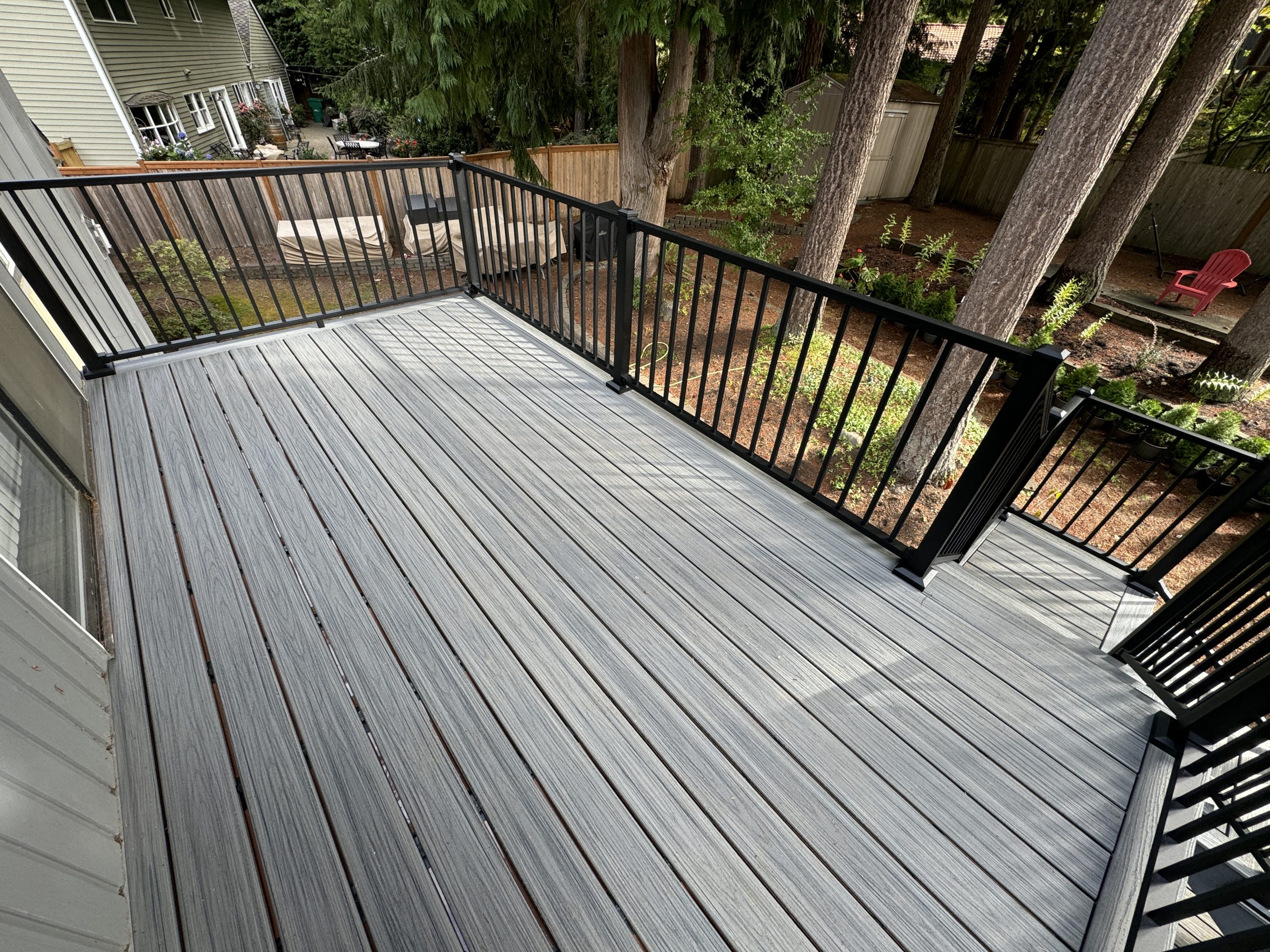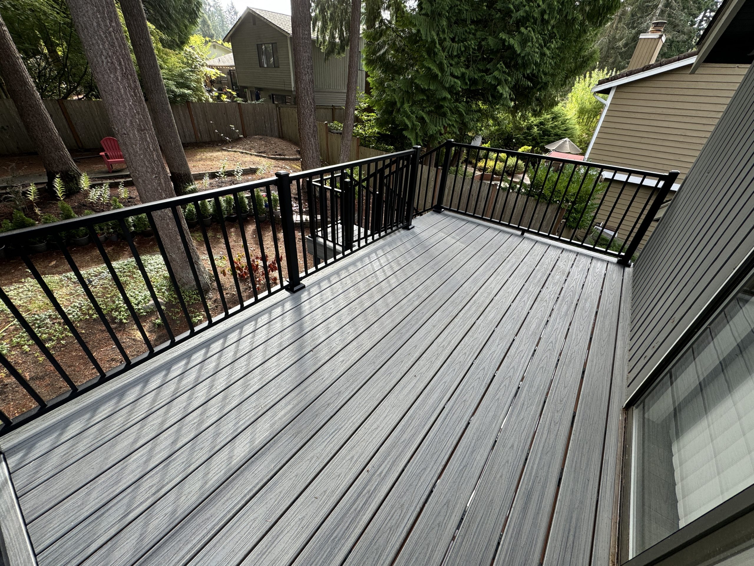 We installed TREX composite top boards, providing a low-maintenance, moisture-resistant surface that performs exceptionally well in Mukilteo’s coastal climate.