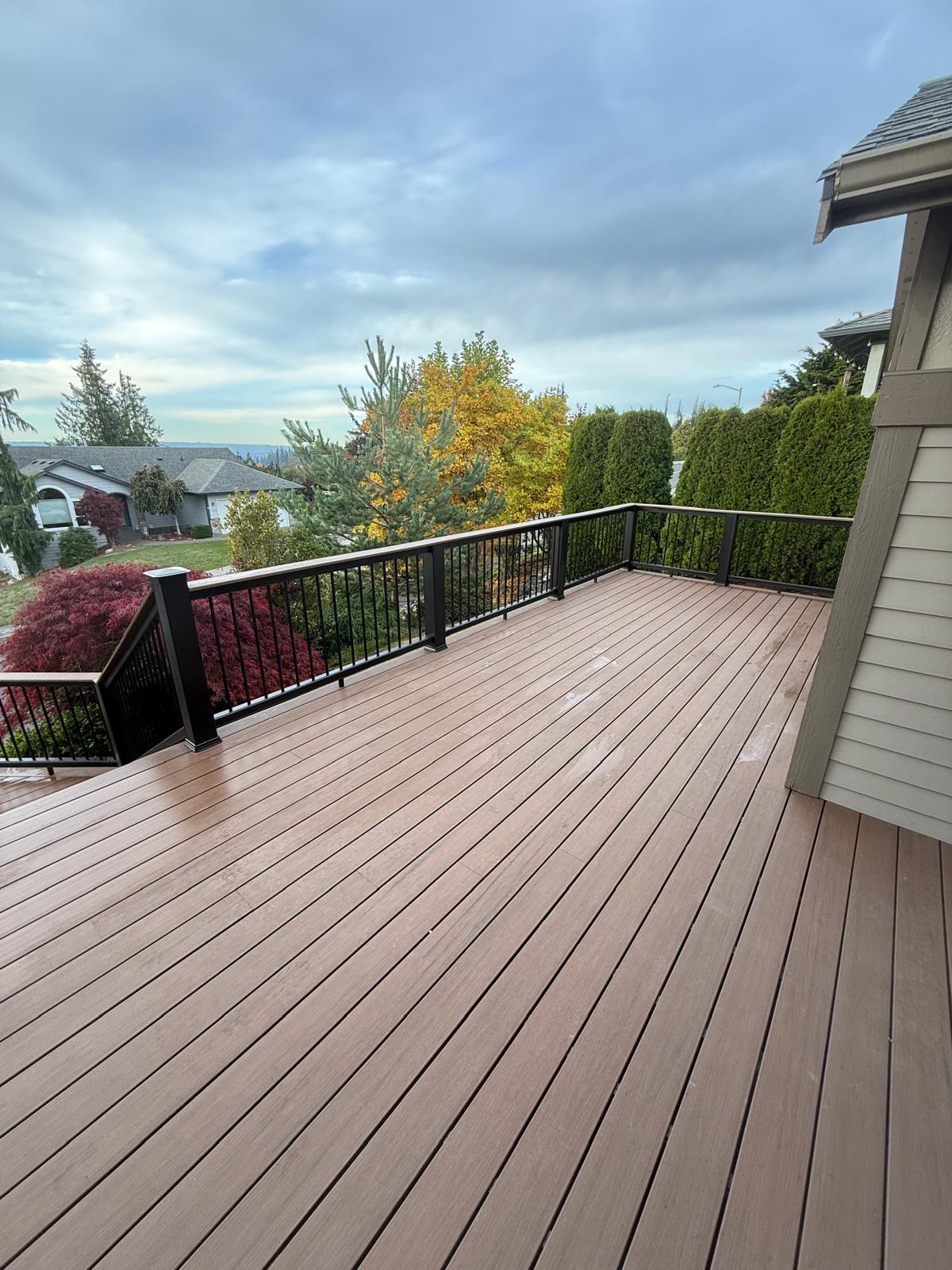 This project was completed in Marysville, Washington, featuring an all-new deck build designed for durability, clean aesthetics, and low maintenance in the Pacific Northwest climate.