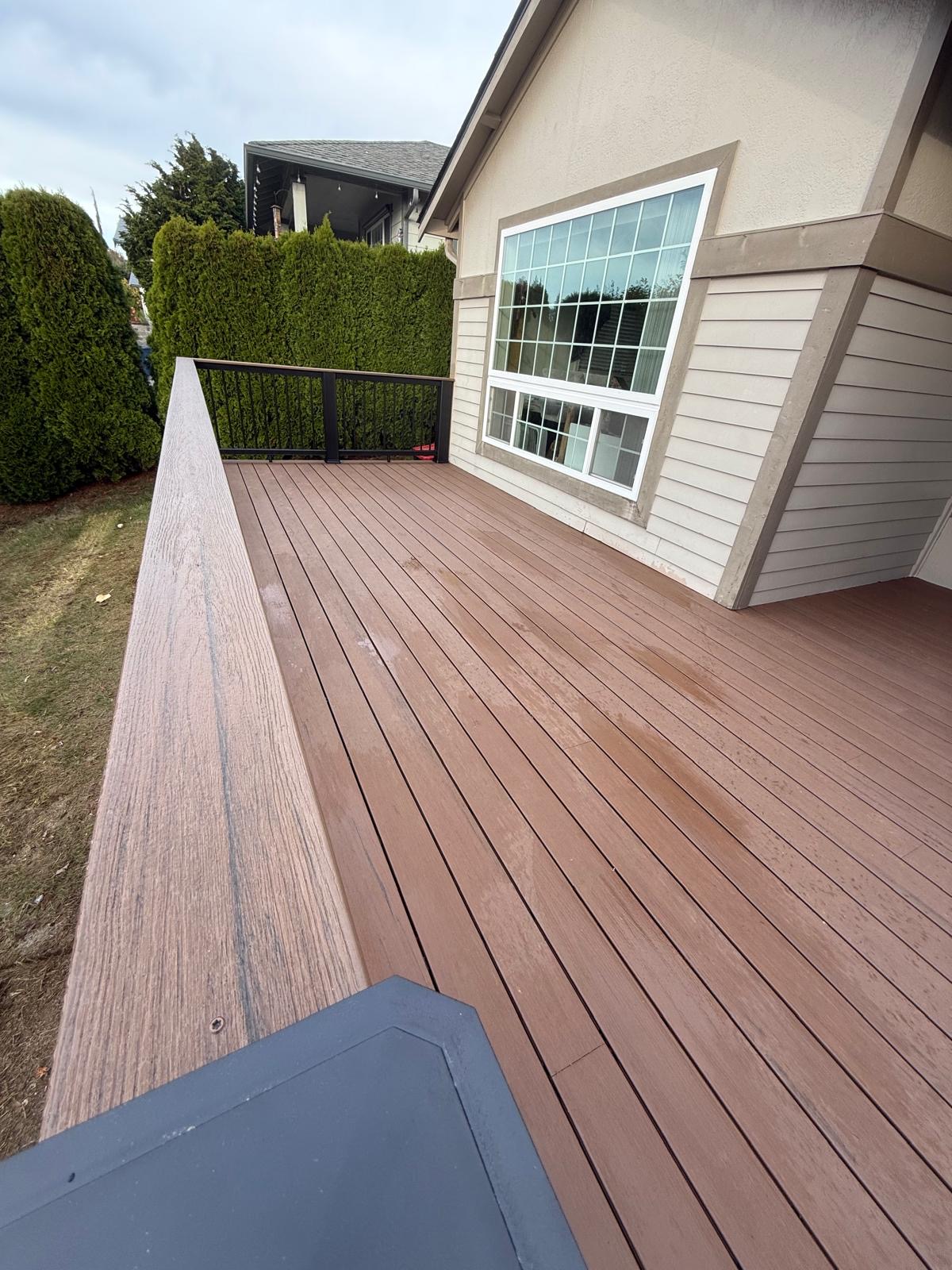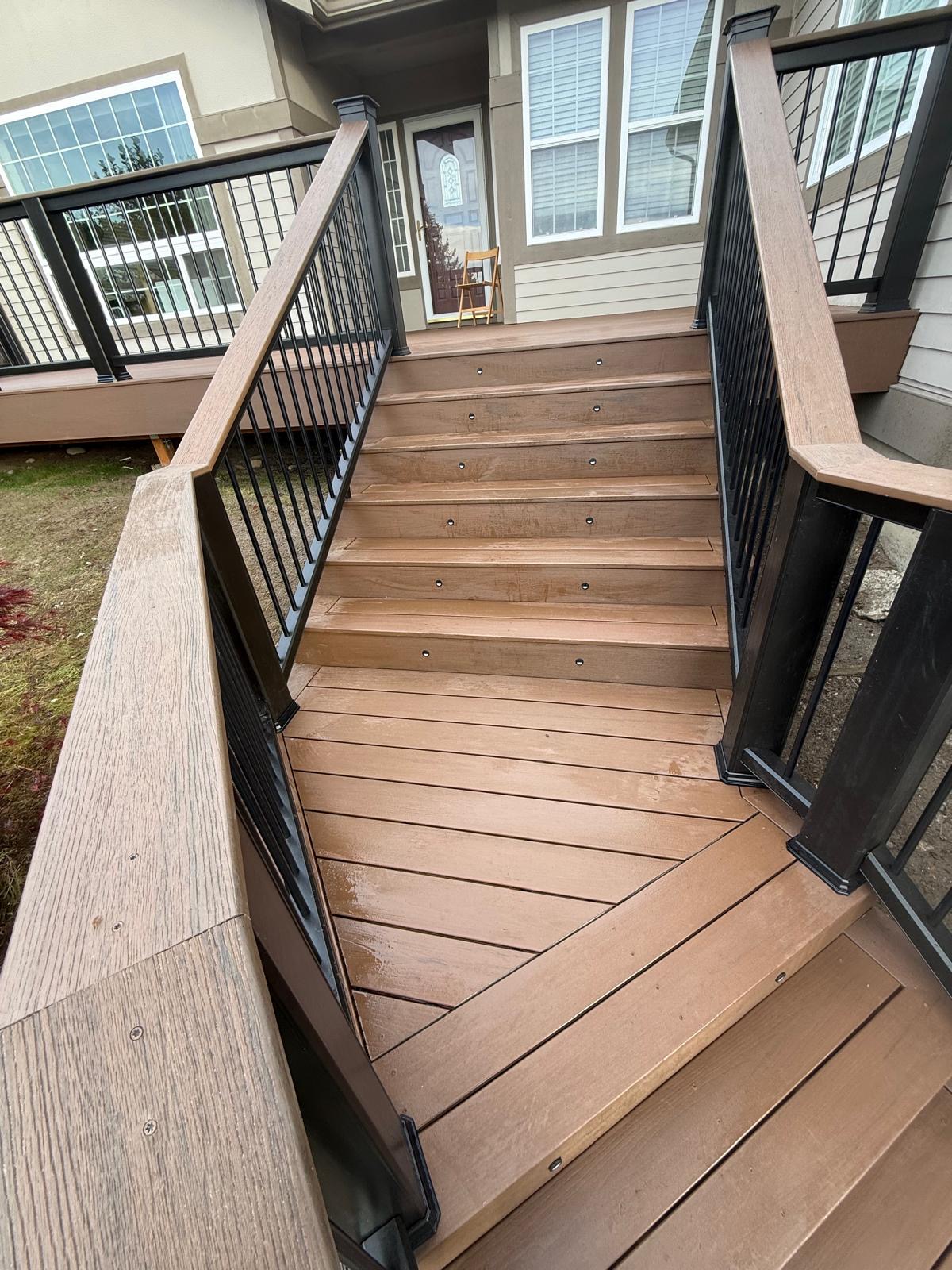 We installed TREX composite top boards, providing a durable, fade-resistant, and low-maintenance surface that performs well in wet and variable weather conditions.